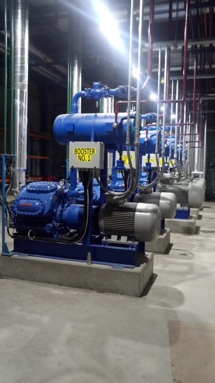 Capacity of 179 kWr, 37 kW at RPM. This is one of many variCOLD Refrigeartion Plant built by NRS. The refrigeration systems serves all cold-room as indicated.